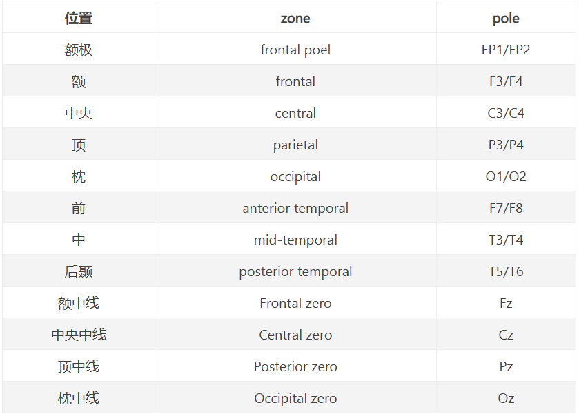 “z”表示放置在中線上的電極,偶數(shù)表示大腦右側(cè)的電極,奇數(shù)表示放置在大腦左側(cè)的電極。