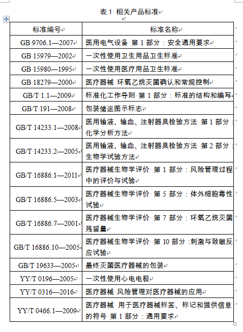 一次性使用心電電極產品技術要求編寫的規范性,引用標準的適用性、準確性。