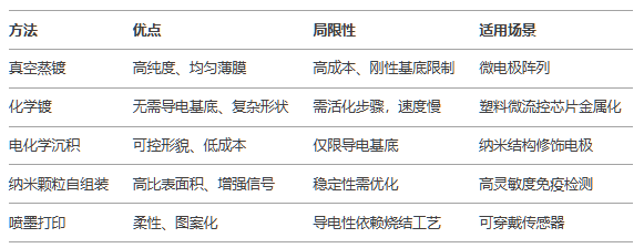 在生物傳感器的制備中,表面金屬化是關鍵步驟之一,旨在通過金屬涂層或納米結構修飾電極表面,以增強導電性、催化活性或生物分子固定能力。以下是常見的表面金屬化方法及其在生物傳感器中的應用: